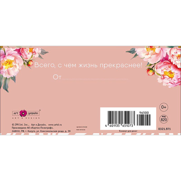 Конверт для денег "Для тебя", Пион