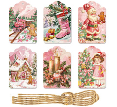 Бирки для подарков, Новый Год, Розовый, 60 шт,