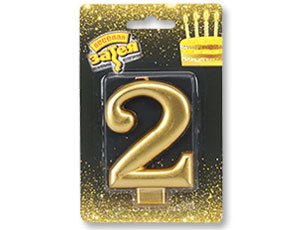 Свеча -цифра "2" Золотая 8см/V